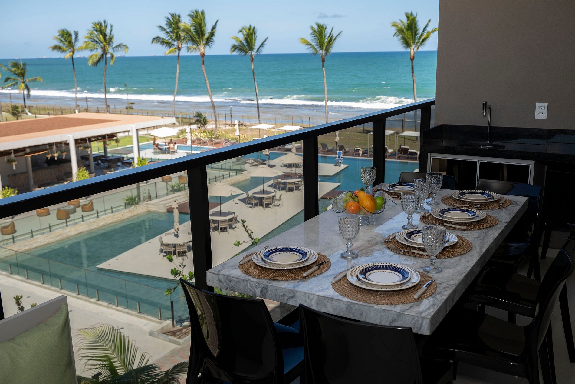 Experimente a sensação única de acordar em um apartamento de luxo, com a imensidão do mar de Muro Alto no horizonte.