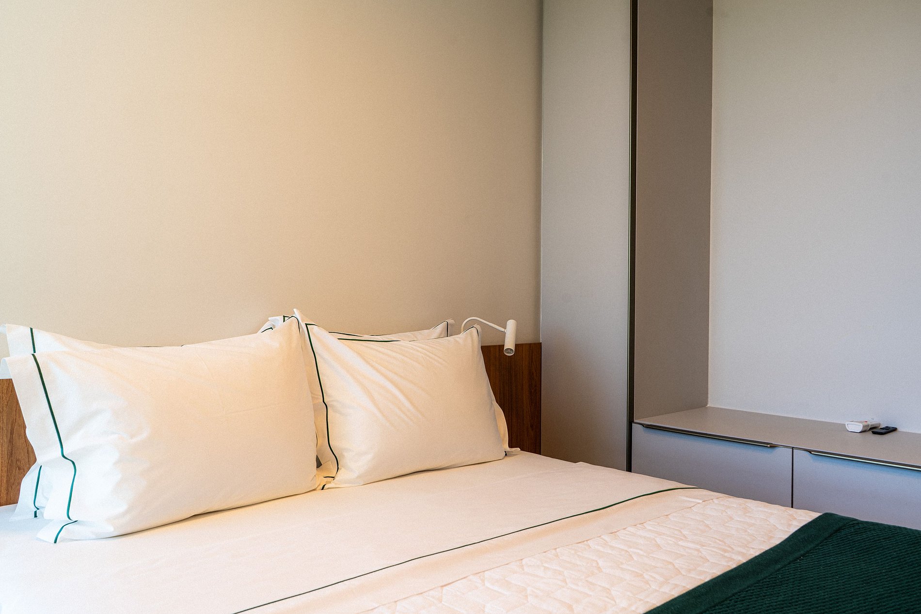 - Cama queen size com colchão confortável e roupas de cama de alto padrão;