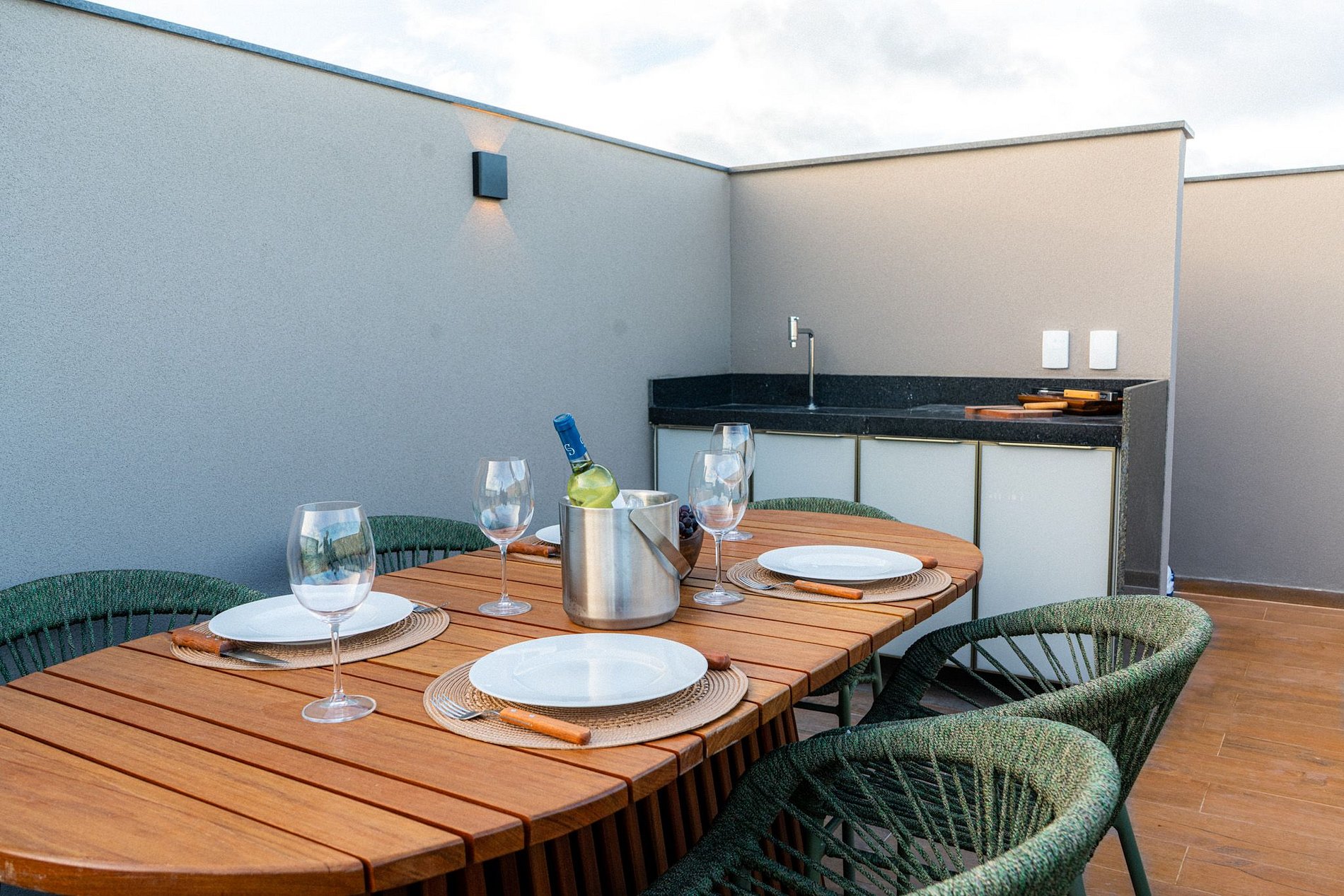 No quarto, uma cama queen size convida ao descanso, com colchão de alta qualidade, lençóis macios e travesseiros que abraçam. E no banheiro, o cuidado com os detalhes também se destaca, proporcionando banhos relaxantes. Para completar, o rooftop privativo é o grande destaque da experiência — o cenário ideal para quem busca momentos de conexão, contemplação e beleza.