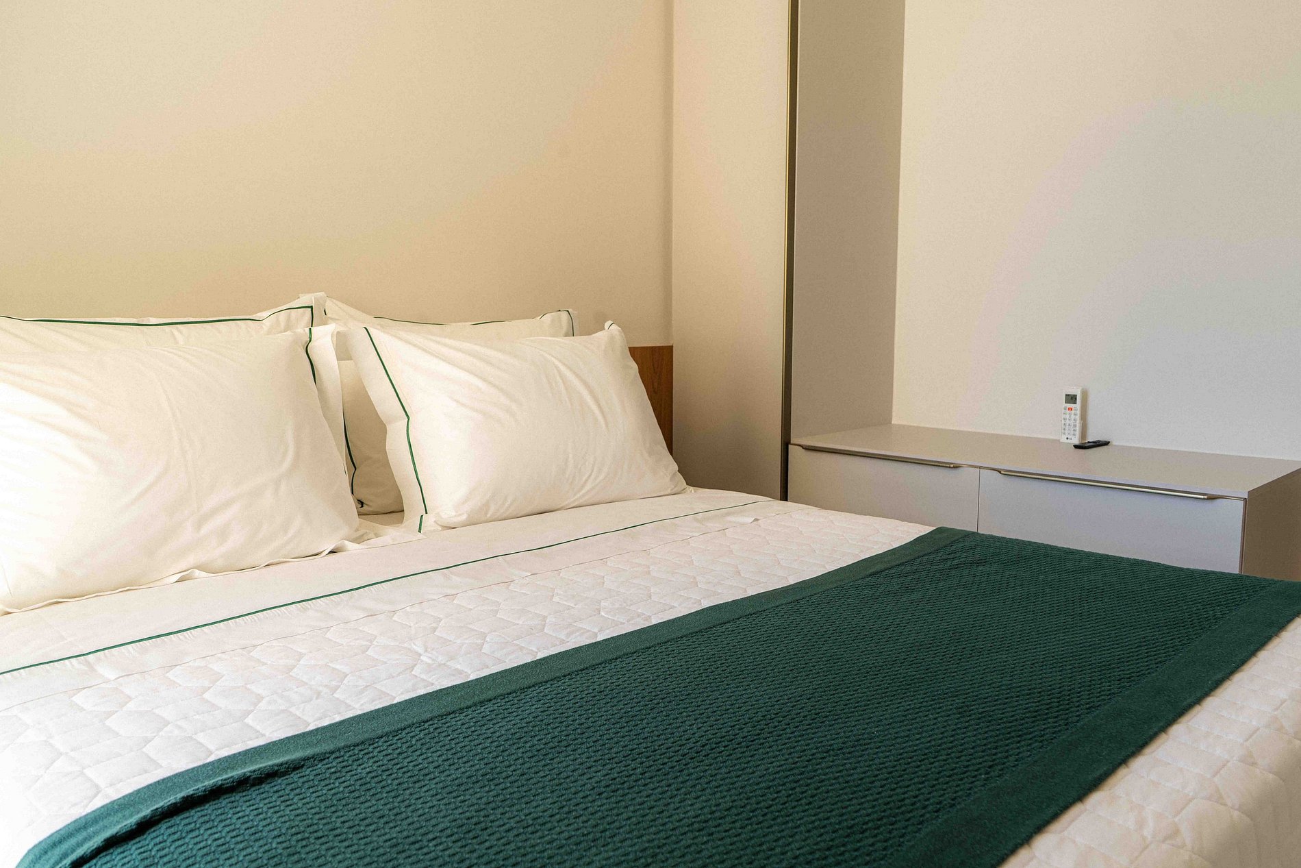 - Cama queen size com colchão confortável e roupas de cama de alto padrão;