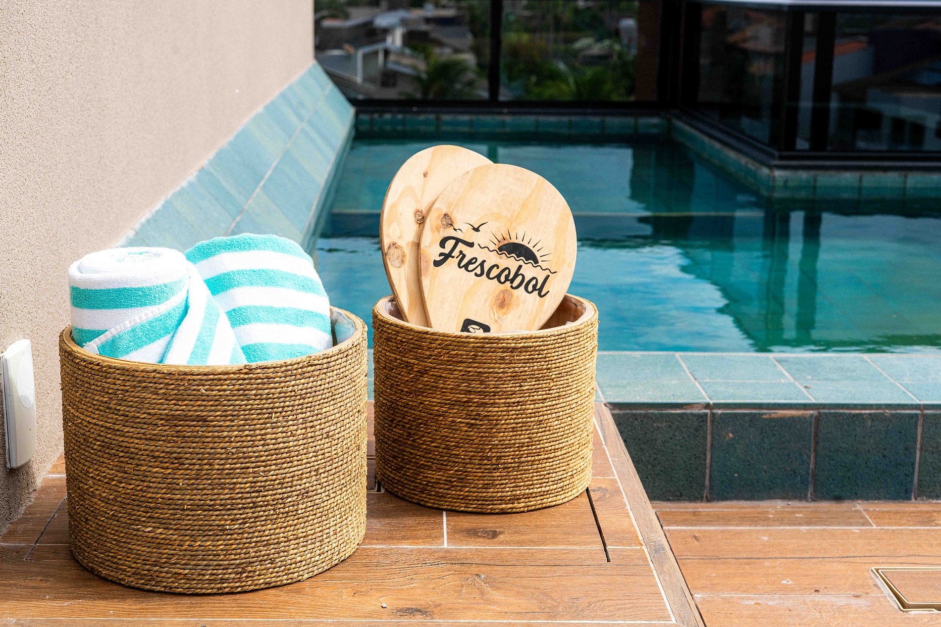 - Jogos de banho completos e toalhas para piscina;