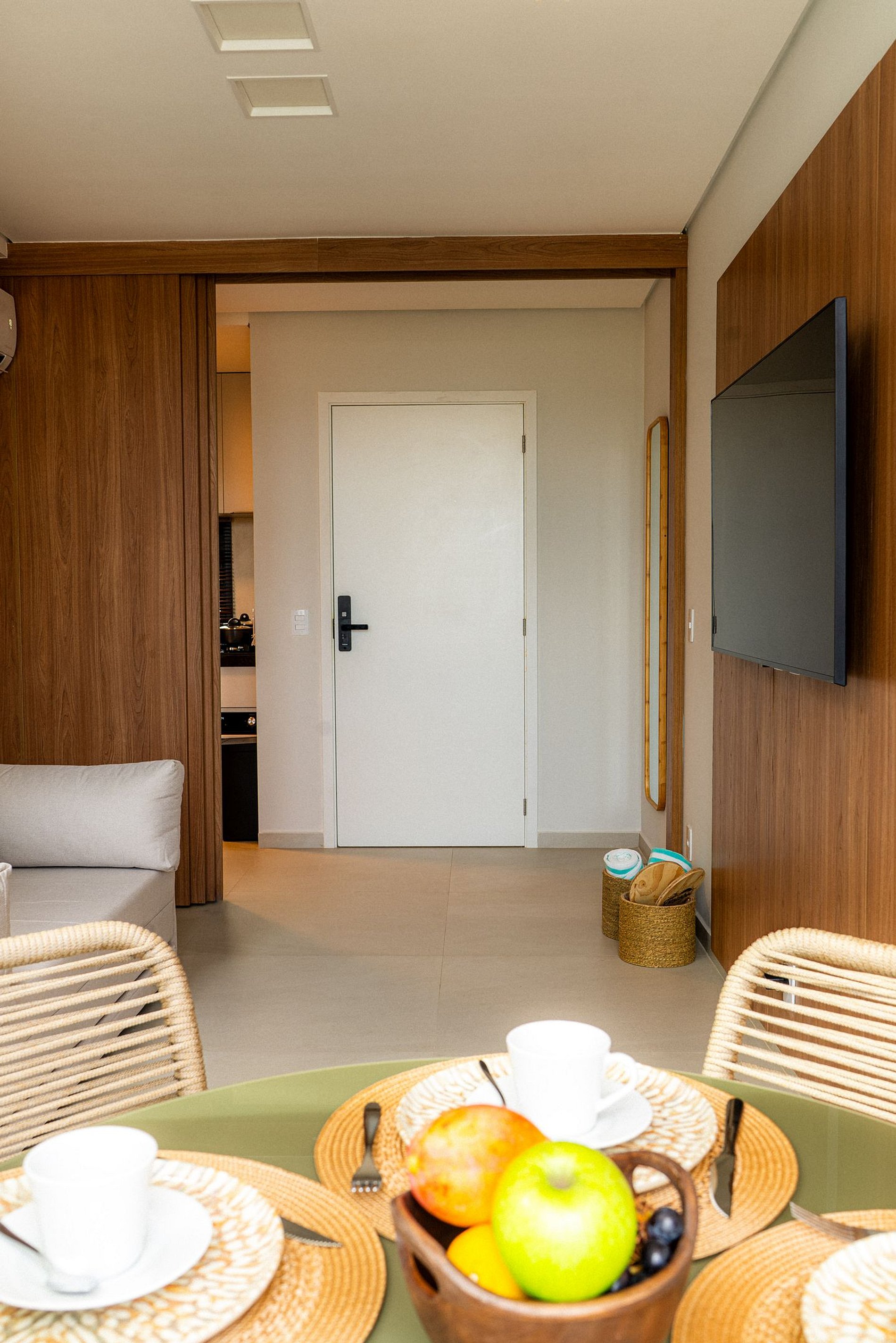 Estrutura impecável e aconchegante: nossas acomodações foram desenhadas para oferecer o máximo de conforto e sofisticação. Com vista deslumbrante do oceano, apartamentos espaçosos e equipados com camas queen size e enxoval de altíssimo padrão. Wi-Fi de alta velocidade e generosas varandas privativas, cada detalhe foi cuidadosamente planejado para criar um ambiente de total relaxamento. Além disso, nossos banheiros oferecem amenities exclusivos e uma fragrância especial, tudo pensado para tornar sua estadia em uma experiência memorável.