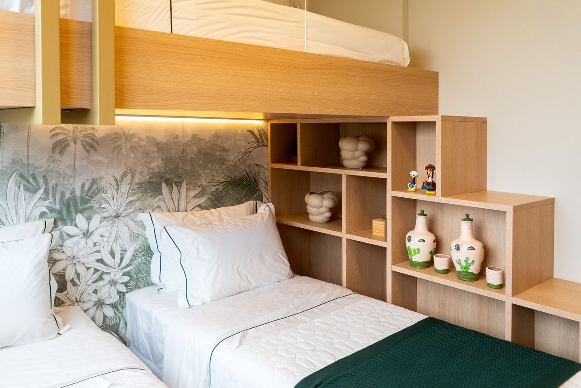 O quarto de hóspedes conta com janela voltada para a piscina infantil e o parquinho, trazendo ainda mais praticidade para quem viaja com crianças. Para a sua tranquilidade, a janela possui telas de proteção.