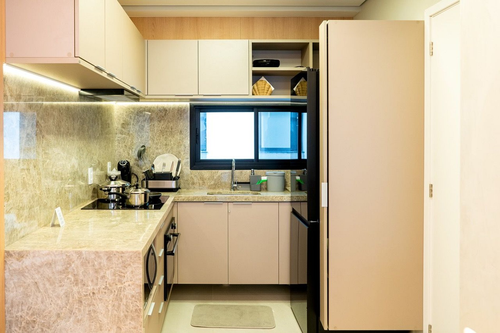Na cozinha completa, com eletrodomésticos de última geração, você terá toda a liberdade para preparar suas refeições com facilidade.