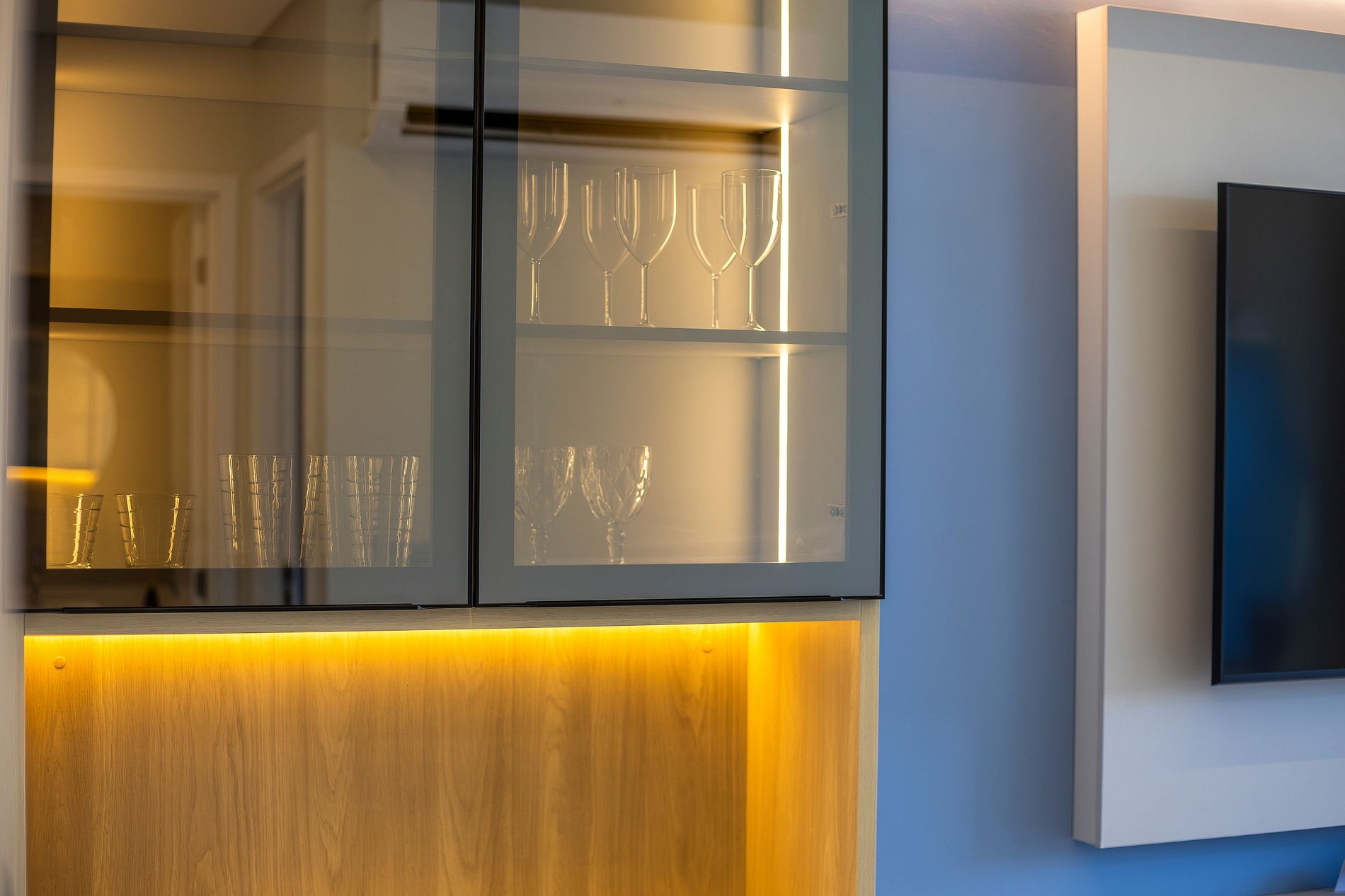 O apartamento conta com automação inteligente para tornar sua estadia ainda mais prática e confortável, além de sensor de monóxido de carbono para garantir total segurança. No quarto, um retroprojetor transforma seus momentos de descanso em uma verdadeira experiência sensorial. Já a sala conta com uma arquitetura que se adapta facilmente às suas necessidades e pode se transformar em um segundo dormitório com total conforto.